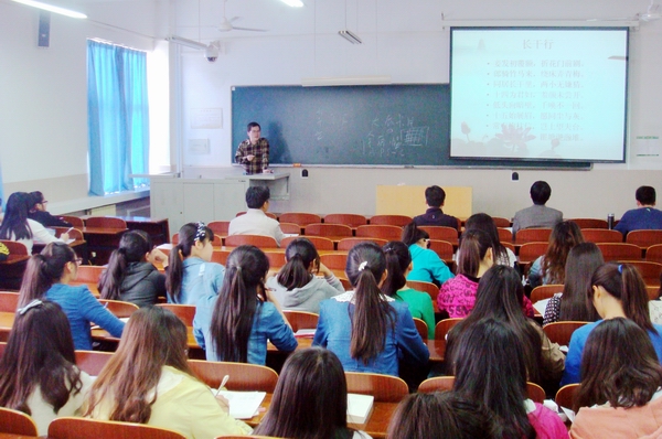 “妾发初覆额,折花门前剧。郎骑竹马来,绕床弄青梅……”4月23日下午,文南303教室,古代文学教师任荣深情并茂地朗诵、解说着李白的名篇《长干行》。文学院2014年青年教师课堂教学竞赛决赛正在激烈地进行。