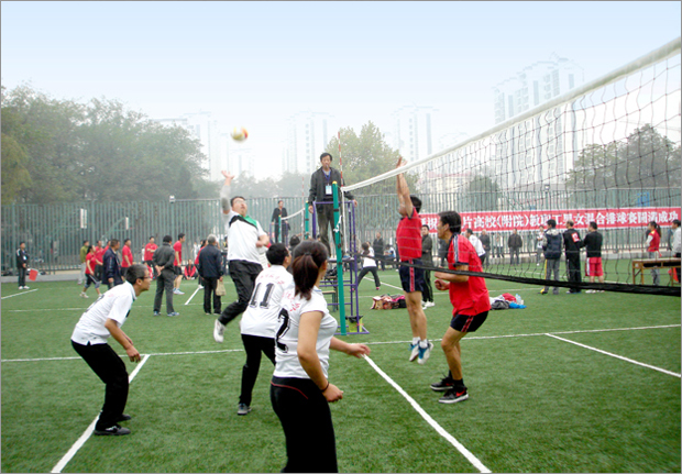 比赛过程中,我校代表队齐心协力,顽强拼搏,先胜强手阜阳师范学院队,进入八强;力克上届冠军宿州学院队,进入四强;半决赛中,以微弱劣势惜败于淮南师范学院队。在与安徽理工大学进行的三四名决战中,我校队员们斗志高昂,救球中鱼跃滚翻,扣球时气势如虹,传接配合行云流水,精彩场面接连不断。 整个比赛过程中,我校球队顺境不骄,逆境不馁,赛出了风格,赛出了水平,体现了淮北师范大学教职工的精神风貌。