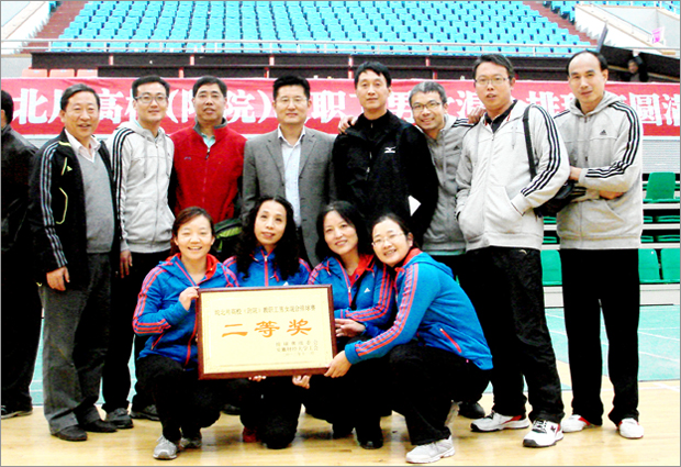 11月8日-10日,皖北片高校(附院)教职工混合排球赛在安徽财经大学举行,来自皖北片高校(附院)的11支代表队参赛。经过紧张激烈地角逐,我校代表队取得了第三名的好成绩,和第二名淮南师范学院队一起荣获二等奖,安徽财经大学代表队荣获一等奖。