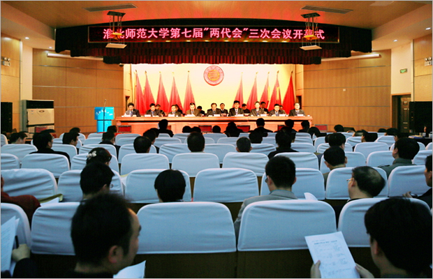 4月10日下午,淮北师范大学第七届“两代会”三次会议在雄壮的国歌声中正式开幕。校领导王磊、王建刚、邓凡政、谢阳群、朱德顺、陈士夫、蔡雷出席会议,“两代会”代表、列席代表及特邀代表参加了会议。校党委书记王磊主持开幕会。校长王建刚作《坚定信心 真抓实干 加快推进特色鲜明的高水平师范大学建设》工作报告。