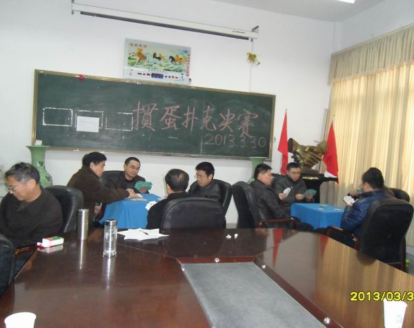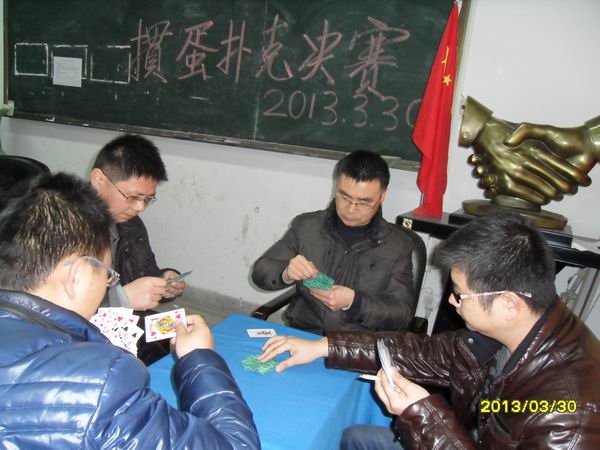 为了丰富教职工的业余文化生活,物理与电子信息学院工会根据学院工会2013年工作计划,于3月30日下午在学院会议室举办了首届“掼蛋”扑克比赛。