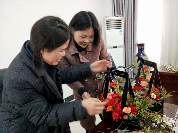为庆祝“三八”国际劳动妇女节,丰富女教职工业余文化生活, 3月9日下午,校工会女工委在教职工活动中心举办“遇见美丽”插花艺术培训班,来自各个部门工会的30余位女教工参加了培训。