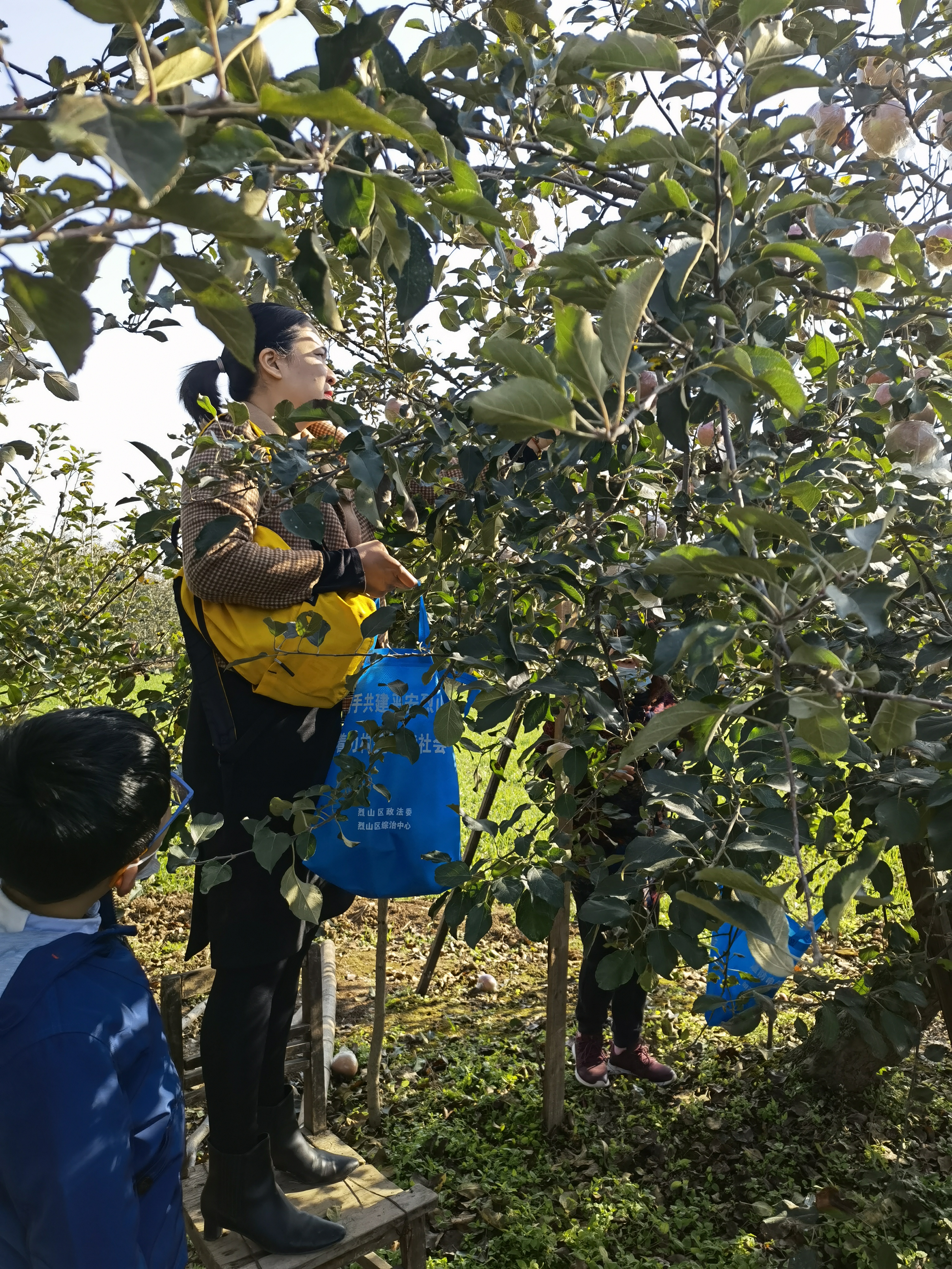 11月13日周六一早,大家准时出发,前往烈山区和村苹果采摘园进行游园采摘活动。一路上大家欢声笑语、其乐融融。一到达目的地,在果农的带领下大家带着筐子、手提袋便兴高采烈进入果园。大家穿梭在果树间、沐浴在阳光里,品尝着香脆的果实、享受着劳动的快乐。大人、孩子齐心协力、互帮互助,不一会就满载而归。愉快的氛围洋溢在整片果园上空。
