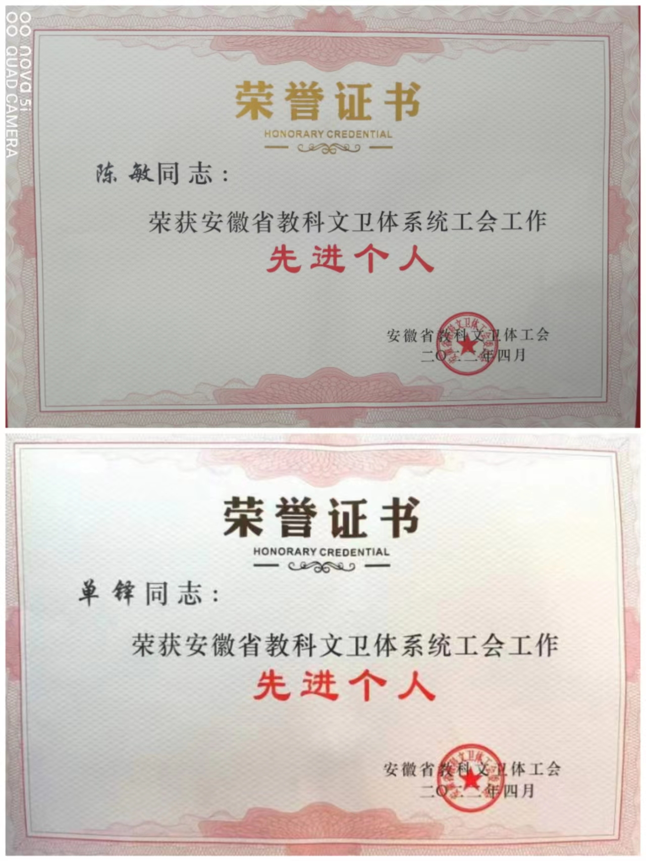 我校部分单位和个人获安徽省教科文卫体工会表彰