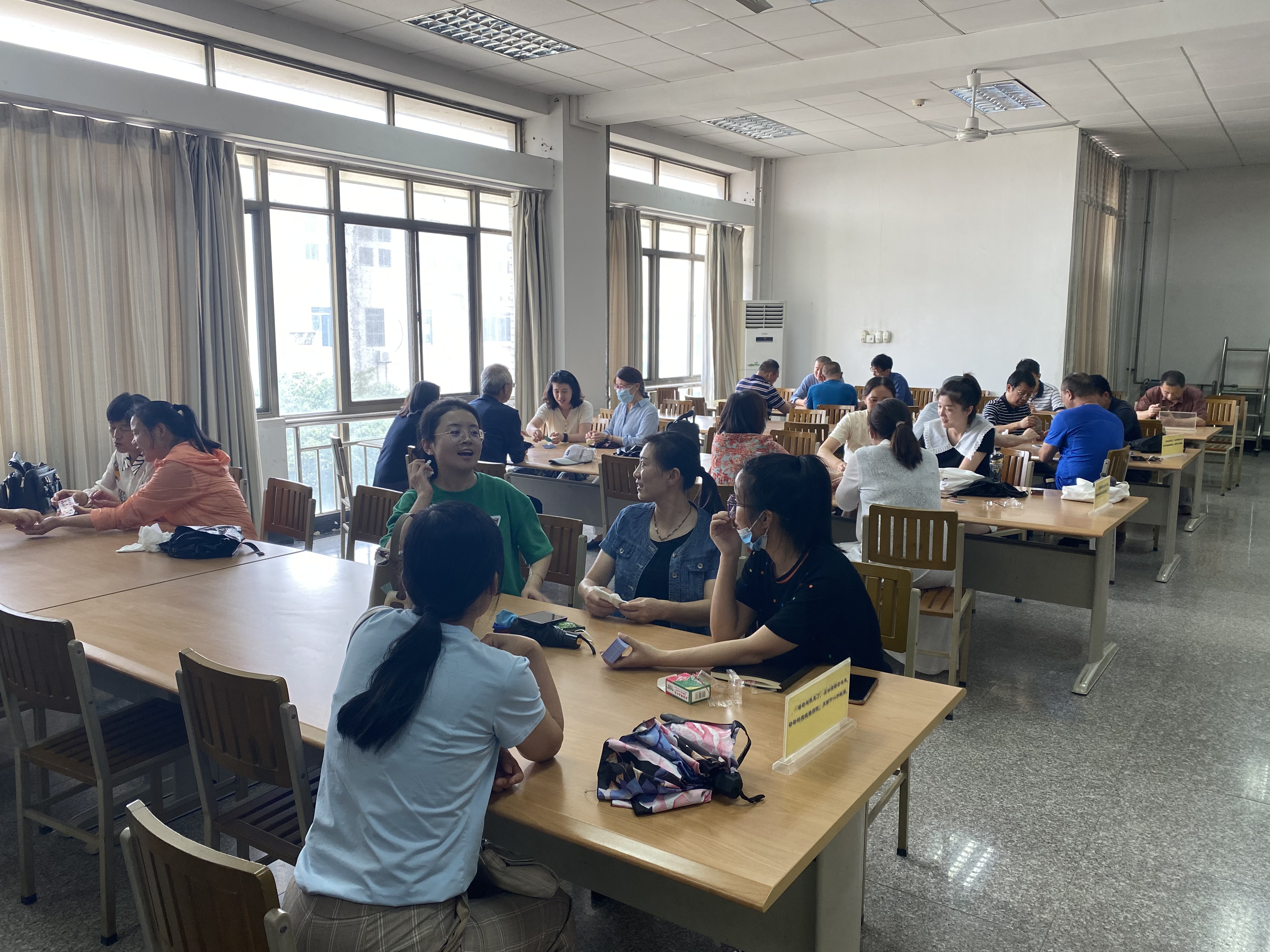 图书馆工会举办趣味比赛活动 来源: 发布时间:2022-06-16 14:38:46 浏览次数: 次 【字体:小 大】 为放松教职工紧张工作状态,丰富业余生活,在当前疫情防控依旧严峻的形势下,图书馆工会为减少出行风险,于6月8日下午,特组织教职工在本馆参加趣味掼蛋比赛等活动。教师们通过掼蛋、成语接力、团队合作等游戏活动,放松了身心,增进了交流,带来了欢声笑语,增添了图书馆的凝聚力。 (文图:王茜楠 / 审核:赵恒) 分享到: 【打印正文】
